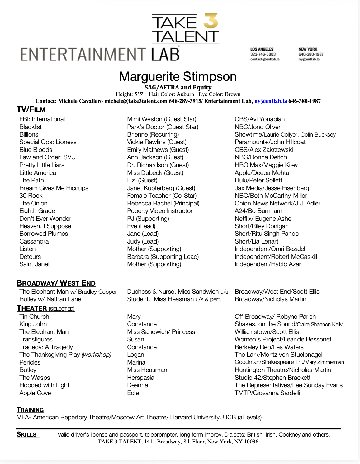 michele@take3talent.com | 646-289-3915